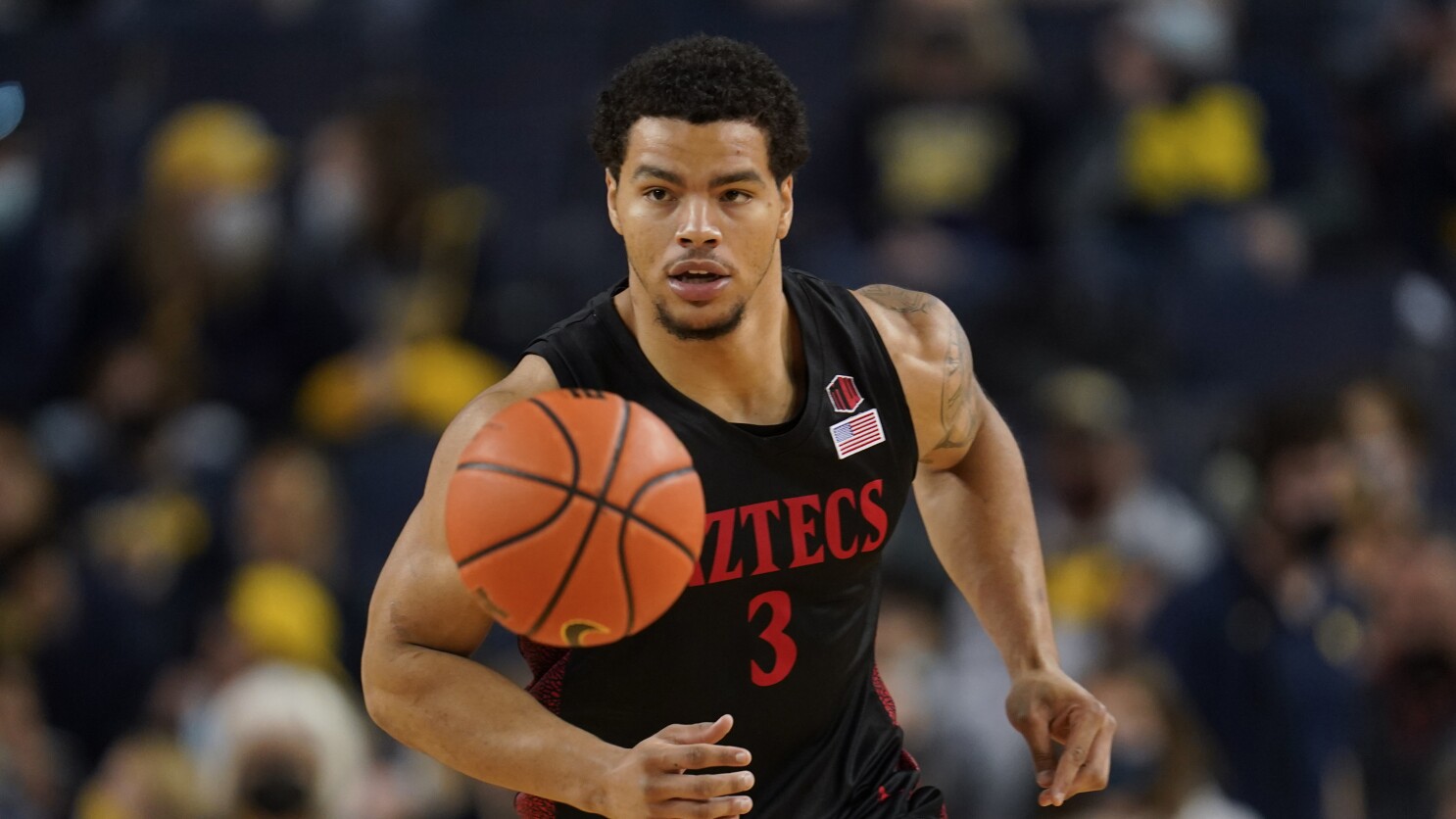 Noch immer ist den Aztecs grimmiger Trotz anzumerken, da sie 2020 in der Position waren, um die Meisterschaft mitzuspielen und ihnen diese Chance durch den Pandemie-bedingten Abbruch genommen wurde. Seitdem hat sich das Gesicht des Teams geändert, doch die Devise bleibt die alte: Defense wins championships! Kein Team rührt so dicken Zement an wie die Aztecs. Sie zwingen ihre Gegner zu einer durchschnittlichen Angriffslänge von fast 20 Sekunden – das ist der Höchstwert unter allen 358 Teams. Basis hierfür ist das konsequente Switchen über alle Positionen, das sie sich aufgrund der exzellenten Physis aller Akteure problemlos erlauben können, ohne Mismatches abgeben zu müssen.